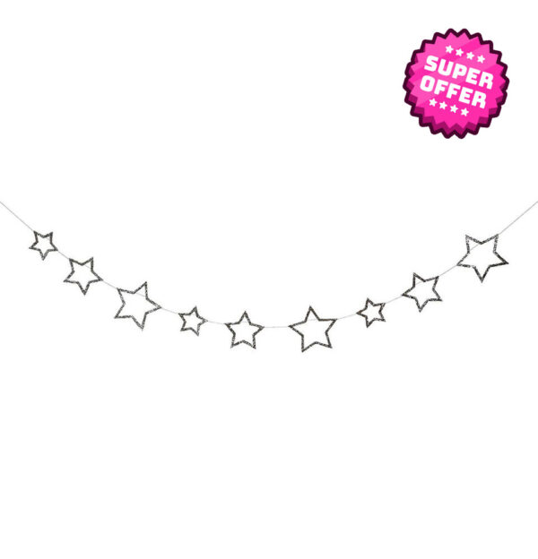 Aggiungete stile in qualsiasi stanza con questa splendida ghirlanda di stelle d’argento: decorata con glitter per un effetto scintillante. Composta da 42 stelle in tre diverse misure.