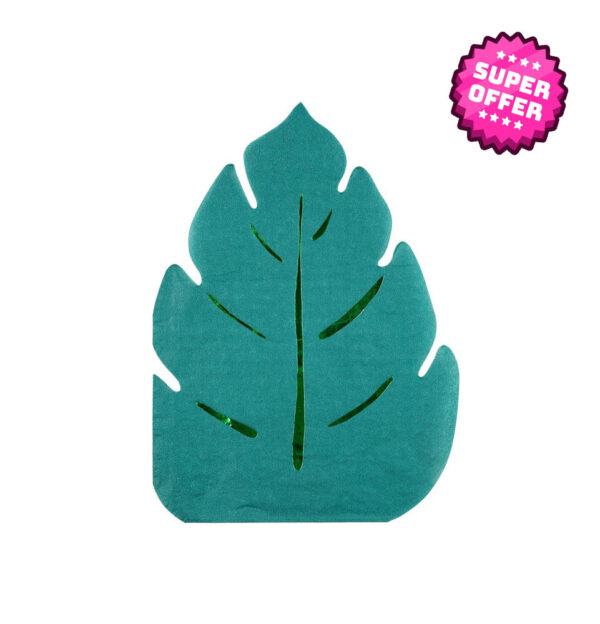 Un set di tovaglioli sagomati, impreziositi da particolari verde lucido. Perfetti per una festa a tema giungla oppure tropicale. Liberate la vostra fantasia nel creare il perfetto corredo.
